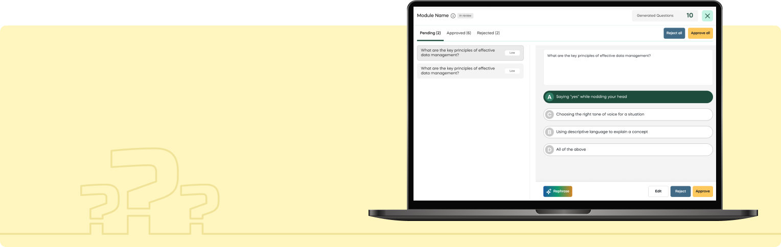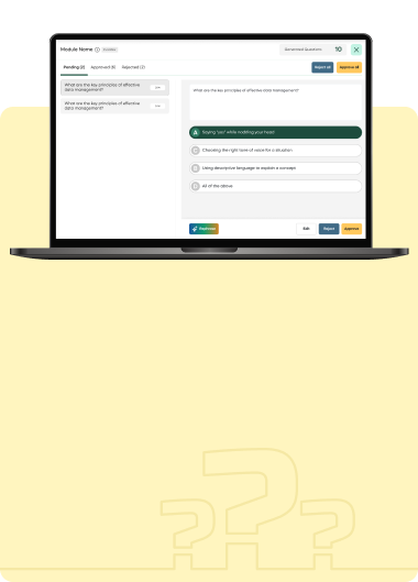 Effortlessly upload users, generate questions with our AI-powered curation tools, and conduct secure assessments with ease.